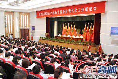 10日上午,市委、市政府召开庆祝第25个教师节暨教育现代化工作推进会,隆重庆祝第25个教师节,部署教育现代化推进工作。市领导陈扬、夏正祥、张秋红、薛晓寒、钱富强、姚美学出席会议。市委常委、宣传部长张秋红主持会议。