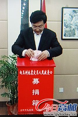 一方有难,八方支援。青海玉树地震灾区的灾情牵动着83万高邮人民的心。19日下午,市委书记丁一主持召开市委常委扩大会议,就我市对青海玉树地震灾区捐款工作进行专题部署。他说,玉树地震发生后,举国上下都在牵挂着那些被埋在废墟中的各族同胞,都在关心着那些在地震中受伤的各族同胞,高邮人民也不例外。全市上下要携手同心、情系玉树,通过捐款捐物等方式为灾区人民尽微薄之力。会上,丁一、夏正祥、朱德辉、倪文才、张安龙等市四套班子全体领导进行了现场捐款,向灾区人民献上了一份爱心。