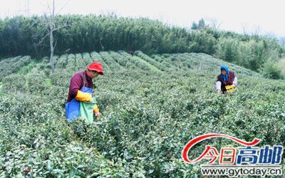 截至5月中旬,我市惟一的天山镇神居山村茶场春茶采摘宣告结束。据了解,该场面积达300亩,每亩纯收入在3500元左右。图为茶农正在采茶。