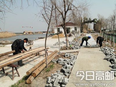 当天上午,记者随着工作人员走进芦苇荡景区,一幅紧张、忙碌的施工景象便映入眼帘:内河景区码头正在扒土围建,施工人员忙着铺设钓鱼台长廊地砖、焊接钢架木板房……同行的界首镇副镇长钱景告诉记者,目前,项目土建全部完成,已进入景点建设阶段,长达3.5公里的沿湖电力杆路架设事宜正在对接之中。