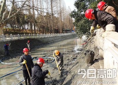 今年,市水利局继续实施城河畅通活水工程,主要对琵琶河、护城河上段、万斤河上段以及长生大沟上段进行清淤、清杂。图为3日下午,施工人员正在清理城河中的淤泥和杂物。