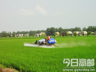 今年,我市被列为全省水稻病虫害全程承包防治试点县(市、区),市农机部门积极引进各类高性能植保机械,大大提高了在田农作物病虫害防治质量和效率。图为界首镇水稻生产服务合作社的自走式高效植保机正在为农户进行病虫害防治。