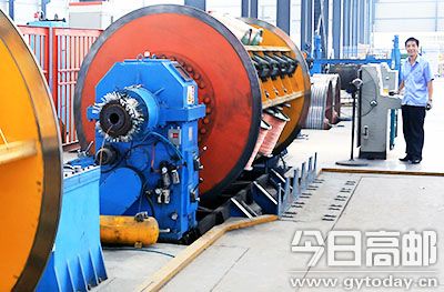 扬州曙光电缆股份有限公司近年开发超高压电缆项目,迅速抢占行业制高点,成为中石油、中石化、国家电网等央企和国家重点工程供货商,今年上半年在手订单已达12亿元。图为工人正在生产高品质电缆产品。