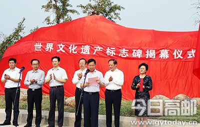 揭幕仪式上,市委常委、宣传部部长张秋红致辞。她说,运河遗产的保护、整治是申遗成功后的基础性工作,对已经列入遗产名录的遗产点要严格遵守相关法规,按照世界遗产的要求做好保护工作;对尚未实施的遗产保护项目要尽快组织实施。同时要充分利用好世界文化遗产城市这张具有影响力的文化名片,进一步吸引和集聚各方面的优质资源,带动高邮文化、旅游相关产业的发展,为文化高邮提供强大动力。