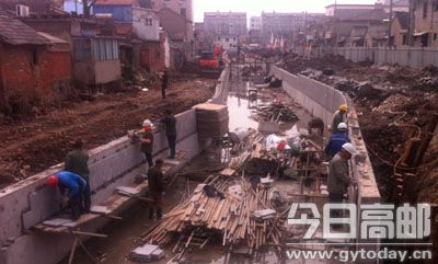 市河二期整治工程于今年9月施工,目前已完成河道开挖、岸墙、底板浇筑等主体工程80%以上工程量,预计工程于今年年底完工。图为施工人员正抓紧施工。