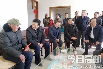 本报讯10日上午,省委常委、组织部部长王炯,副省长徐南平率队来邮,深入湖西新区、菱塘回族乡走访慰问敬老院老人、老党员、伤残军人、低保户等,送来省委、省政府的关怀与问候。扬州市委书记谢正义,市长朱民阳,市委副书记、组织部部长张爱军,高邮市委书记韩方等一同走访慰问,送上新春祝福。