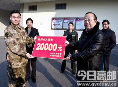 3日上午,市领导韩方、张秋红、汤学仁、付有根一行先后来到市人武部和公安消防大队,感谢官兵们长期以来为高邮地方经济社会发展所作的积极贡献。慰问中,市委书记韩方对大家过去一年取得的成绩表示祝贺。他说,过去的一年,广大驻邮部队官兵为高邮地方经济社会发展和双拥工作作出了应有的贡献。他同时希望,广大驻邮部队官兵要继续发扬拥政爱民的光荣传统,积极参加和支援高邮经济建设,并祝愿大家在新的一年里工作顺利,身体健康,合家欢乐。