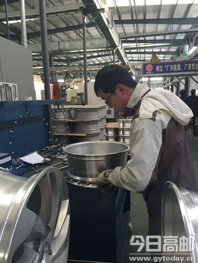 位于开发区的中信戴卡公司自去年8月竣工投产以来产销两旺,产品从原来的月产8万只轮毂增至现在的月产18万只轮毂,预计年销售可达10亿元。图为生产现场。