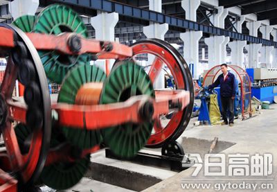 今年以来,位于菱塘回族乡的扬州光明电缆有限公司,面对激烈的市场竞争,发挥企业自身优势,进一步扩大船用特种电线电缆的产能,在全国同行业中脱颖而出。图为该公司船用电缆车间工人正在为客户生产特种电缆。