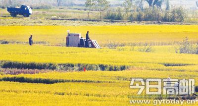 前段时期的连日阴雨,给我市秋收秋种造成不小的影响。天气晴好后,全市上下抓紧时间全力投入抢收抢种工作。图为高邮镇人机齐上阵,抢收成熟水稻。