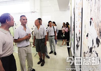 9日上午,由市发改委、市老干部书画研究会主办的班林先生(市发改委退休干部)国画展在市行政中心二楼举办。市人大常委会副主任杨向东与广大书画爱好者一起观看了展览。图为画展现场。                                      王林山  摄