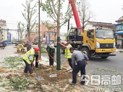 国庆节将至,市园林建设部门组织人员新栽种了一批绿色植物,以扮靓邮城,喜迎国庆。图为园林工人们正在盂城南路加紧施工。 晓晖 摄