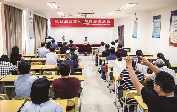 21日下午,市融媒体中心特邀市文化研究院院长、集邮协会会长、中国集邮家博物馆名誉馆长倪文才作“弘扬廉政文化,坚持廉洁从政”专题讲座。讲座中,倪文才以邮票为媒介,分别从廉政文化的概念及内涵、传统廉政文化的表现形式、社会主义廉政文化的核心、廉洁从政从我做起四个方面进行了深刻论述,使与会的党员干部接受了一场深刻的廉政文化洗礼。 王莹 文 王林山 摄