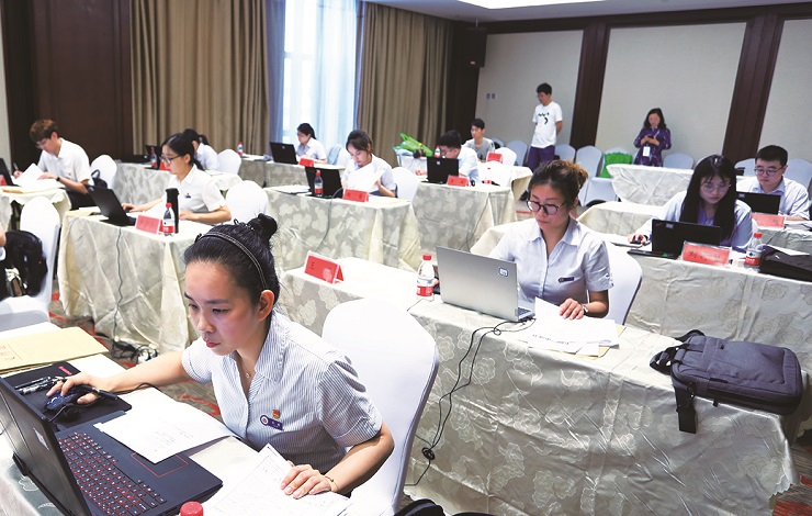 6月29日,由扬州市自然资源局、人社局、总工会主办,高邮市自然资源局承办的扬州市第二届全市不动产登记业务技能竞赛在我市举行。竞赛项目包括理论考试、业务考核、知识竞答、仪态评比等。经过各环节比拼,我市荣获团体二等奖,石慧获个人第一名。图为参赛人员认真答题场景。 王林山 摄