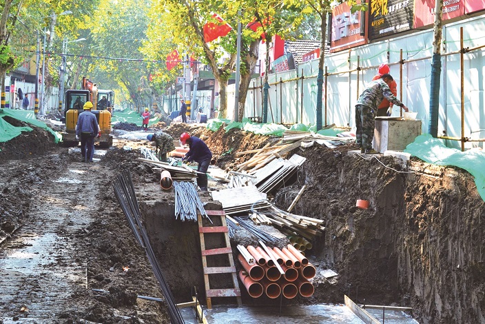 今年9月23日起,我市对中山路原有道路进行拆除新建,实施雨污水管道、各类综合管线入地,完善亮化、交安等市政基础设施。目前,自来水管道、雨水管道和污水管道已经全部铺设完毕。预计于2022年1月15日前完成施工。图为项目实施现场。