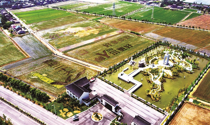 在周山镇志光村龙华组的江苏之心地理信息园旁,一幅幅彩色稻田画活灵活现,“好事成双 ‘邮’你更好”“红色周山”“高邮城市LOGO‘223’”“喜迎党的二十大”等图案成为一道别致的乡村景观,彩色稻田画亦与江苏之心地理信息园相得益彰。