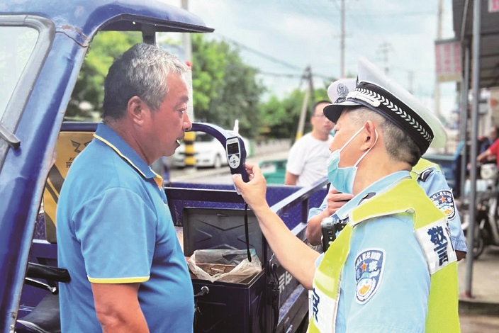 近日,市公安局交通警察大队开展夏季治安打击整治“百日行动”,严厉查处重点车辆各类违法行为,对酒驾醉驾、超载超限等行为进行全面整治,同时开展交通安全宣传,确保夏季道路交通安全形势平稳。图为整治现场。