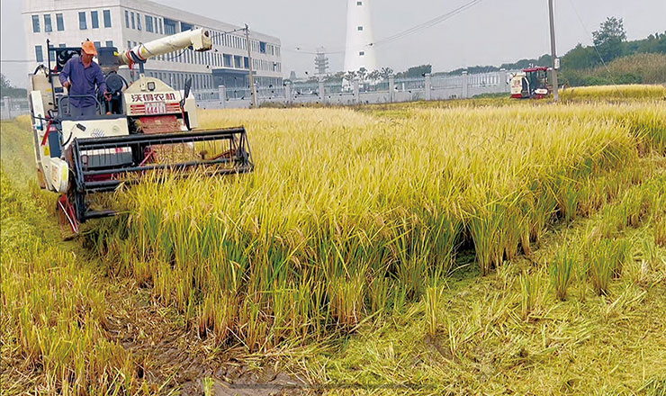 金秋十月,稻香四溢。眼下,全市82.35万亩水稻丰收在望,田间处处是“丰”景。11日下午,菱塘回族乡清真村集体农场的110亩水稻开始收割,收割机在田间来回穿梭,将丰收的稻谷收入囊中。图为收割现场。