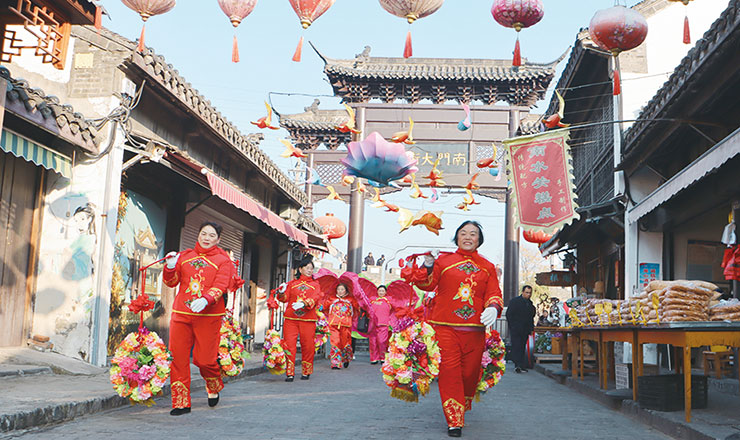 19日上午,南门大街、盂城东市“走进非遗 品味高邮”2025年暖冬非遗市集活动热闹开市,高邮咸鸭蛋制作技艺、蛋雕、三垛方酥制作技艺等多个高邮非遗农产品与特色手作项目集中亮相,肩担木偶戏、挑花担、荡湖船、蚌壳舞等踩街表演精彩上演,让市民游客沉浸式感受传统文化的无穷魅力。图为卸甲镇非遗传承人正在精彩表演。
