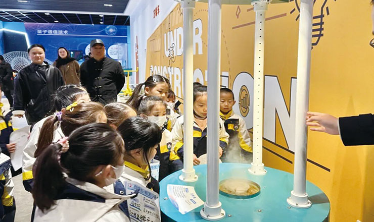 近日,汪曾祺幼儿园的孩子们走进市科技馆,开展了一场以“科技点亮中国”为主题的沉浸式科学探究课程。活动中,通过听解说、亲体验、看表演、动手做等形式,让孩子们在科学场景中感受科技的魅力。图为活动现场。