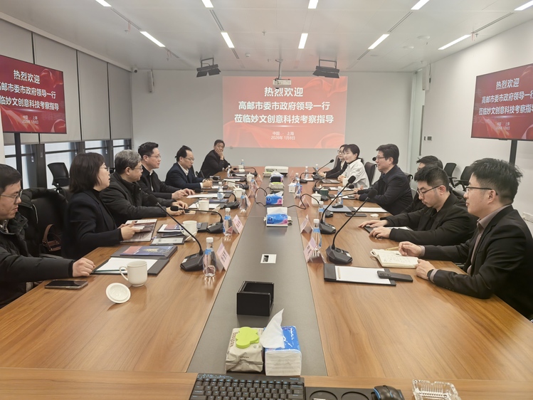 上海妙文创意科技有限公司是一家专注于数字内容创意与品牌营销整体解决方案的高新技术企业,为城市品牌打造、文旅IP开发等领域提供一站式服务。双方就如何利用数字创意技术活化高邮历史文化资源、提升城市品牌影响力等内容进行了深入交流。郑志明希望双方在文旅融合与城市营销方面开展具体合作。