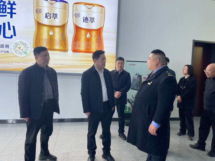 高铁站作为重要交通枢纽,节前客流量大幅攀升。郑志明一行深入高铁高邮站安检口、站台等重点区域,实地检查安检设施运行、客流疏导、治安管控以及应急处置准备等情况,详细询问春运期间运力调配、值班值守及安全保障措施落实情况。郑志明强调,交通枢纽是节日安全防范的关键点位,相关部门要提高政治站位,强化责任担当,细化安全保障方案,加强人员密集场所巡查。要加强安检人员培训,做好客流趋势研判,科学调配运力,优化人流疏导流程,完善突发事件应急处置预案,全力保障群众平安顺畅出行。