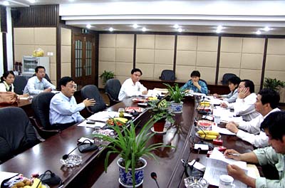 汉留镇代表组正在讨论工作报告。