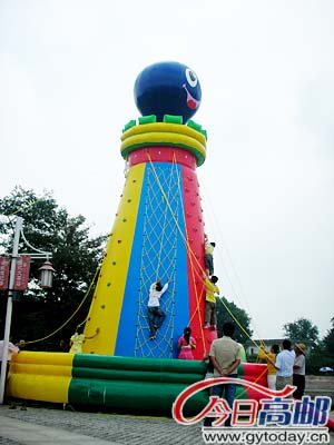 中秋长假三天,蝶园市民广场上新增设的攀爬项目吸引了不少小朋友。