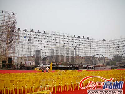 于本月15日开始搭建的“双节”大型晚会舞台工程于20日晚全部结束。据了解,此次灯光、舞美效果由江苏长三角舞美设备公司全权负责,届时将有上万余人到现场观看演出。