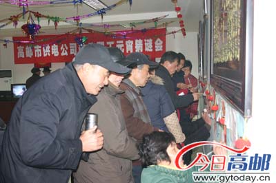 2月9日,农历正月十五,市供电公司退休职工参加了公司组织的元宵节猜灯谜活动。图为老同志们正在猜灯谜。