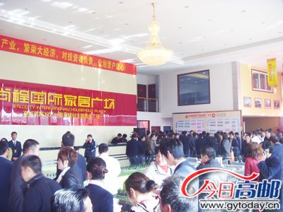 尚程国际家居广场坐落在市经济开发区,占地面积170亩,建筑面积18万平方米,集“产品批发、展示贸易、仓储物流、网上交易、商务办公、酒店餐饮、休闲娱乐”七项功能于一体。总投资6000万美元,注册资本1200万美元。目前项目注册资金已经全部到账,已启动首期5万平方米的商业用房建设,预计2011年底前交付使用。图为活动当日认购现场。