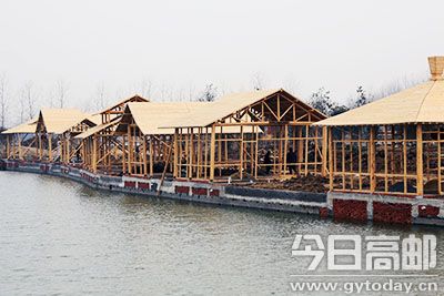送桥镇扬州润华生态农业园于去年3月在黄圩村开工建设,目前园区已初具规模,预计今年6月投入使用。图为施工人员正在园区内施工。