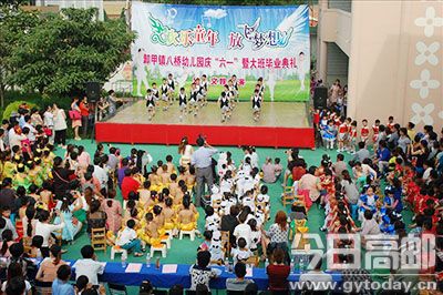 连日来,卸甲镇各小学和幼儿园纷纷通过文娱表演、书画比赛,走访慰问残困生、留守儿童等多种形式,共庆“六一”。图为28日上午,卸甲镇八桥幼儿园《欢乐童年 放飞梦想》庆“六一”文娱汇演现场。