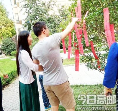 在扬州欧洲城广场上,树上挂满了写着灯谜的纸条,一张张随风吹拂。刚准备好,业主们就站在谜语前开始认真思考了。在这里,欧洲城彩生活服务中心工作人员精心准备了百余条灯谜供业主竞猜。当相关负责人宣布活动规则以后,大家争先恐后地看谜面、猜谜语,有的默默沉思,有的互相探讨,场面十分热闹。12岁的龙凤胎兄妹在家长带领下也来猜谜语,两个孩子一起琢磨,不一会儿就拿着几个谜面到工作人员处换取奖品。“平时就喜欢猜灯谜,听说彩生活服务中心工作人员在广场举办活动,早早地就过来参加了,虽然猜对的不多,但看见了老朋友、结识了新朋友,拉近了邻里之间的距离。”业主赵大爷边猜灯谜边说。68岁的业主邵萍安说:“平常老人家也只能在附近乘乘凉,聊聊天,灯谜活动一开始便吸引了很多年轻人来玩,看着大家乐乐呵呵的,心里很开心。”