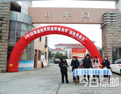 3月1日是第46个“国际民防日”。当天,市人防办利用多媒体防空警报器LED屏、微信公众平台、报纸等多种渠道宣传民防法律法规。图为市人防办联合康华社区工作人员在小区门口设立宣传台,向过往群众宣传各类防空减灾应急救援知识,并发放宣传资料300余份。