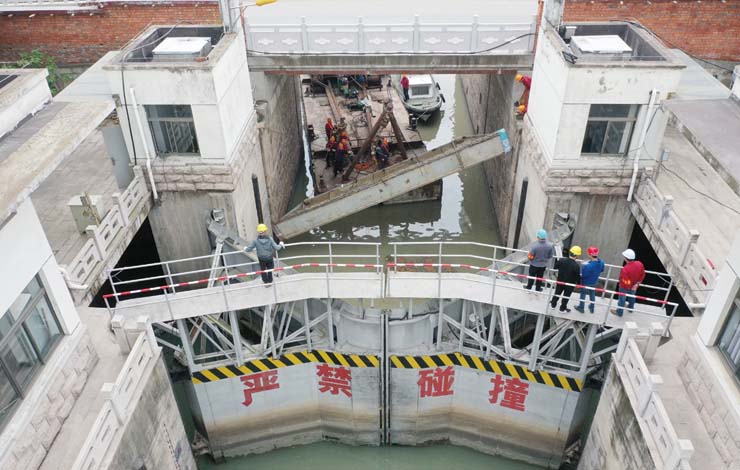 运西船闸是联通京杭大运河和高邮湖,连接苏皖两省的重要水运枢纽和通道,该船闸始建于1986年,设计年船舶通过能力350万吨。近年来,随着船舶大型化的发展,船闸通过量逐年提高,大大超过设计通过能力,运西船闸常年超负荷运行。特别是自1996年大修以来,经过12年的运行,闸阀门运转件磨损严重,止水多处损坏,门体构件局部变形,船闸技术状况明显下降。为保证船闸安全运行,省交通运输厅港航事业发展中心决定对运西船闸实施停航大修。此次船闸大修工程工期历时40天,将对闸门、阀门、电气设备等多项硬件设施实施大修施工作业。目前,已完成船闸大修工程设计交底、施工组织设计、安全方案审查及加工件验收,大修施工各项目正按照日程安排稳步推进。