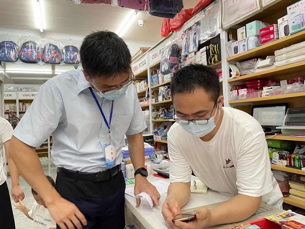 为提高复工复业商户的防范意识,市人大明确责任人,细化到点位,采用“一对一”“多对一”的包联形式,每天安排5名志愿者下沉到高邮镇高谢路和武安路,当起网格员,积极开展巡查走访,向沿街的商户、作坊发放疫情防控宣传资料,查看防疫物资是否准备齐全,提醒他们做好场所消杀、测量体温、查看扫码等疫情防控注意事项,并指导商户签订恢复营业申请书,助力商户复工复业。