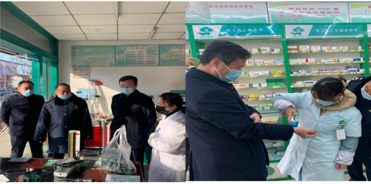 在药店、超市,金锋检查了工作人员口罩佩戴情况和测温枪的使用效果,建议店员更换高性能测温枪,确保人人能测温,次次有显示;并对店内工作人员进行“三查三报告”的内容抽查,要求对测温、查看“双码”的操作牢记于心。城北分局表示将立即对辖区内36家药店进行“回头看”,切实发挥药店“哨点”作用。