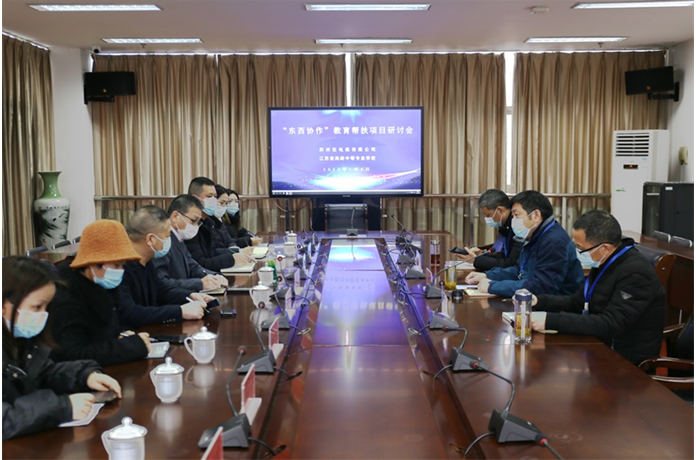 1月5日上午,苏州住电装有限公司一行8人来到高邮中专,就“东西协作”教育帮扶项目进行调研。