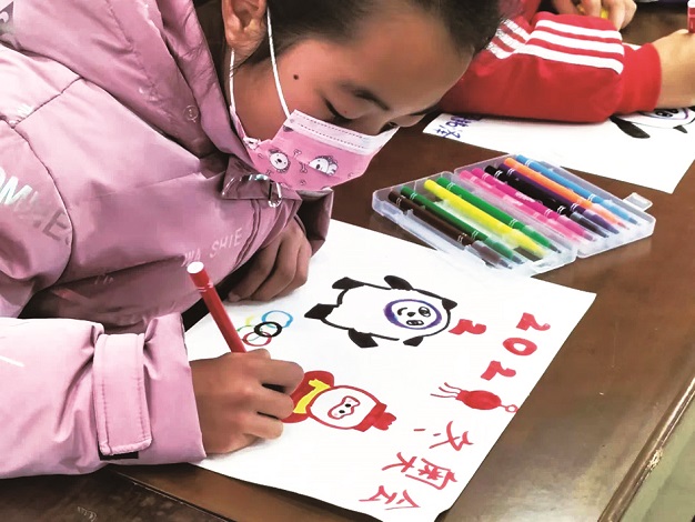 12日上午,奎楼社区开展“童心绘冬奥”比赛暨“猜灯谜、包汤圆”庆元宵主题活动。图为小朋友正在绘画北京冬奥会吉祥物“冰墩墩”“雪容融 ”,为奥运喝彩。 龙政芳 东方 摄影报道