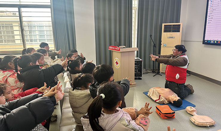 日前,市卫健委联合市红十字会、南海幼儿园共同开展“急救赋能 护‘幼’平安”未成年人急救知识主题教育活动,以互动式、趣味化、沉浸式的急救体验,让孩子们在实践中学习掌握应急自救技能,营造全社会 “人人学急救、急救为人人” 的良好氛围。图为活动现场。