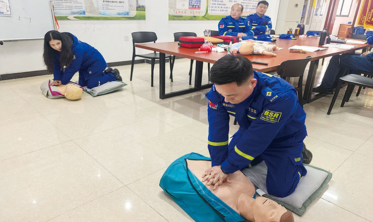 近日,为做好扬州半程马拉松赛保障工作、提高救援技能,高邮蓝天救援队在队部组织开展AHA急救知识专项培训。此次培训进一步提升了救援队的应急急救专业化水平,为今后高效开展救援工作、守护群众生命安全奠定了坚实基础。图为培训现场。